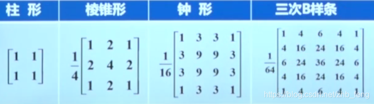 3)卷积插值法:当图像放大时,图像像素的灰度值插值可以通过卷积来实现,即,将输入图像两行两列中间插零值,然后通过低通模板滤波。