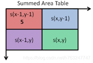 1 处像素点对应的在积分图像中的值为:sum(A);