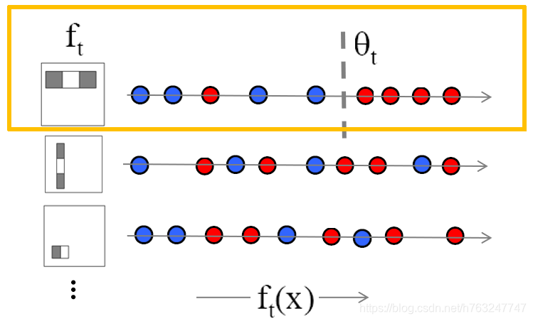 把所有元素分为两部分,小于阈值的一部分分类为人脸,大于阈值的一部分分类为非人脸。