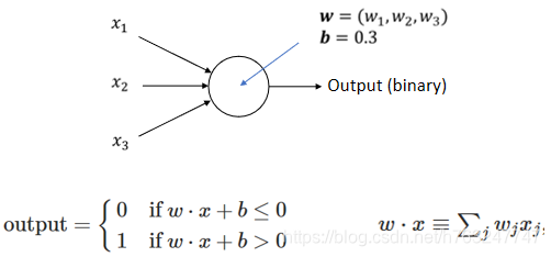 向量w为输入向量x的权重,b为偏差,最后对x的线性组合()的值进行判断,
