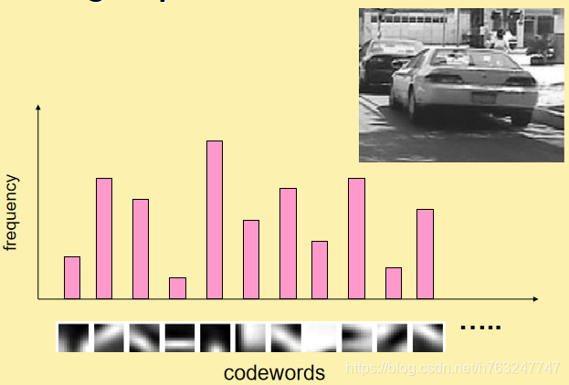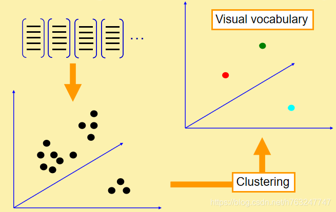 每一个归类的特征(cluster center)被称为虚拟词(visual word),然后量化特征。