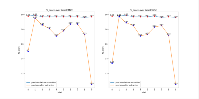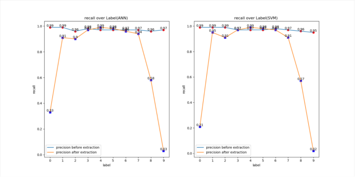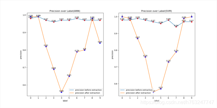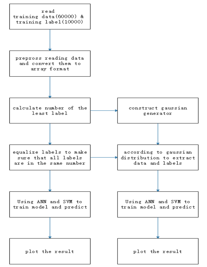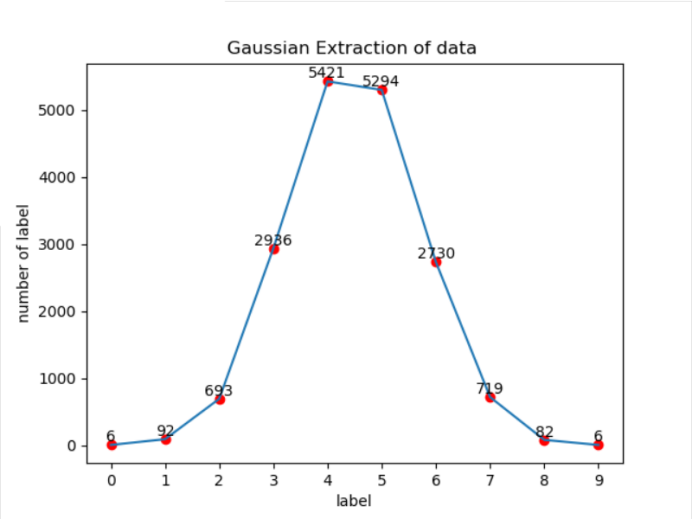 从训练集中抽取数据,保证每种label的数量一致,使用SVM 或ANN模型训练新数据集。按照高斯分布抽取新数据, 再次使用SVM 或ANN模型训练。下图显示抽取后的每种label的个数