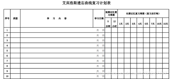 按照这个复习计划表执行,就可以形成潜意识记忆了~