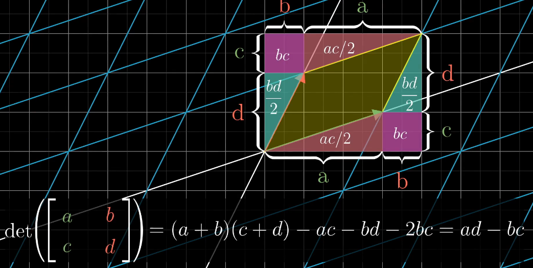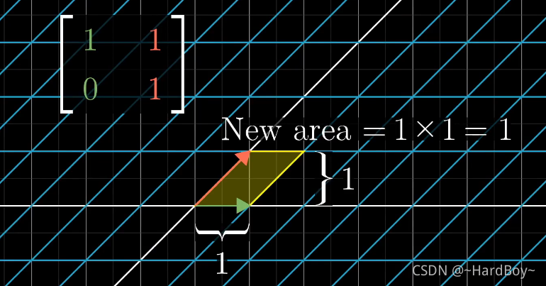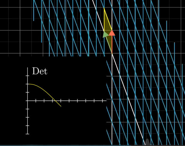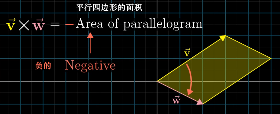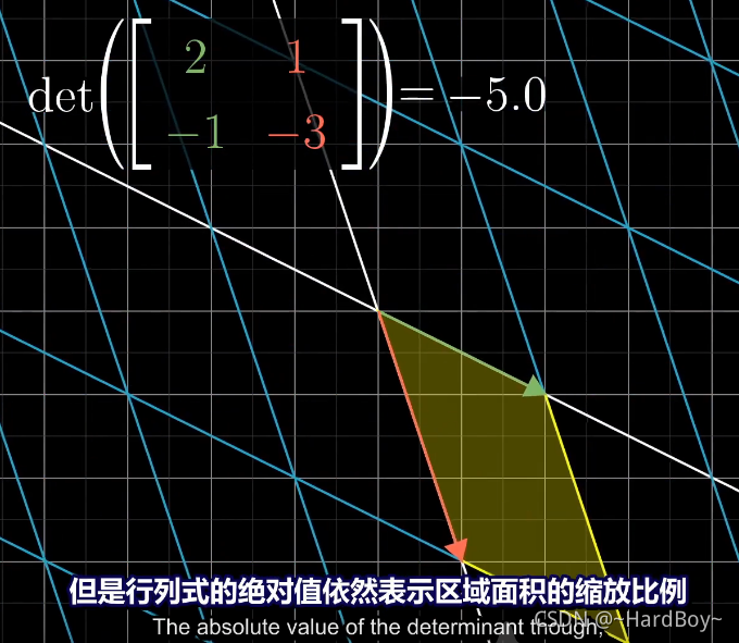 行列式为负表示空间被翻转,但是绝对值仍然表示面积比例