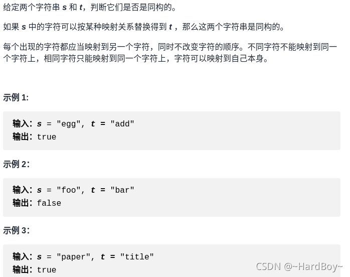 class Solution:def isIsomorphic(self, s: str, t: str) -> bool:if len(s) != len(t):return Falsedict_ = dict()for i in range(len(s)):if s[i] in dict_:if dict_[s[i]] != t[i]:return Falseelse:if t[i] in dict_.values():return Falsedict_[s[i]] = t[i]return True