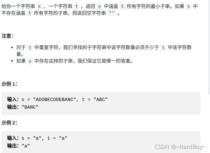 class Solution:def minWindow(self, s: str, t: str) -> str:dict_ = {}for i in t:dict_[i] = dict_.get(i, 0)+1# print('dict_:', dict_)n = len(s)left, right = 0,0remain = 0res = ''minlen = float('inf')while right < n:#向右边拓展if s[right] in dict_:if dict_[s[right]]>0:#大于0这个时候加才有效否则是重复字符remain+=1dict_[s[right]]-=1while remain == len(t):#left 要拓展了 也就是左边要压缩if (right - left) < minlen:minlen = right-leftres = s[left:right+1]# print('==res:', res)left+=1if s[left-1] in dict_:#注意这里left已经加1了 要用前一个字符也就是s[left-1]dict_[s[left - 1]] += 1if dict_[s[left-1]]>0:#大于0这个时候减去才有效否则是重复字符remain -= 1right += 1#放后面进行向右拓展# print('==res:', res)return res