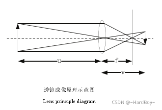 其中 u 为物距, f 为焦距,v 为相距。三者满足关系式: