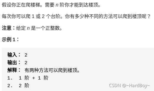 class Solution:def climbStairs(self, n: int) -> int:if n < 3:return na = 1b = 2for i in range(3, n + 1):a, b = b, a + breturn b