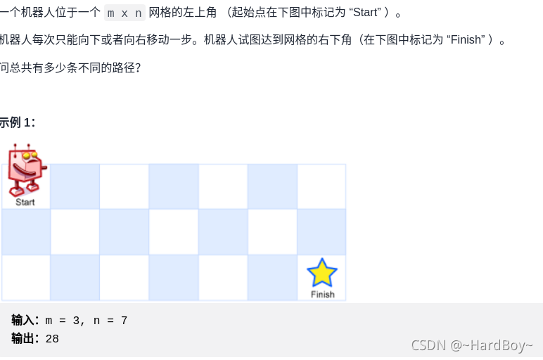 public:int uniquePaths(int m, int n) {vector<vector<int>> dp(m, vector<int>(n, 0));for(int i = 0; i < m; i++){dp[i][0] = 1;}for(int j = 1; j < n; j++){dp[0][j] = 1;}for(int i = 1; i < m; i++){for(int j = 1; j < n; j++){dp[i][j] = dp[i-1][j] + dp[i][j-1];}}return dp[m-1][n-1];}