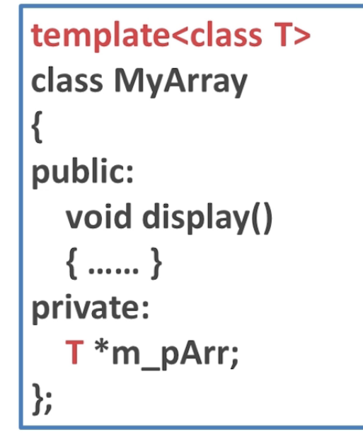 {public:MyArray();~MyArray(){delete []m_pArr;m_pArr=NULL;};void display();private:T *m_pArr;