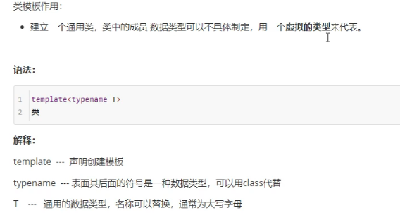 类模板语法和函数模板语法很接近,都是先声明模板出来。