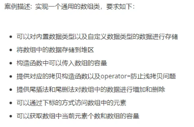 public://有参构造MyArray(int capacity){cout<<"调用构造函数"<<endl;this->m_capacity = capacity;this->m_size = 0;this->pAddress = new T[this->m_capacity]; //开辟堆区空间}//拷贝构造函数MyArray(const MyArray<T>& arr){cout<<"调用拷贝构造函数"<<endl;this->m_capacity = arr.m_capacity;this->m_size = arr.m_size;this->pAddress = new T[arr.m_capacity];//深拷贝//将arr中的数据拷贝过来for(int i=0; i<this->m_size; i++){this->pAddress[i] = arr.pAddress[i];}}//尾插法void PushBack(const T& value){//先判断是否等于大小if(this->m_capacity == this->m_size){return;}this->pAddress[this->m_size] = value; //尾插法this->m_size++; //更新数组大小}//尾删法void PopBack(){//让用户访问不了最后一个元素if(this->m_size == 0){return;}this->m_size--; //更新数组大小}//通过下标方式访问数组中元素T& operator[](int index){return this->pAddress[index];}//返回数组容量int getCapacity(){return this->m_capacity;}//返回数组大小int getSize(){return this->m_size;}//operator= 也是防止浅拷贝MyArray& operator=(const MyArray<T>& arr){cout<<"调用operator= 函数"<<endl;//先判断原来堆区是否与数据,如果有先释放if(this->pAddress != NULL){delete []this->pAddress;this->pAddress = NULL;this->m_capacity = 0;this->m_size = 0;}//深拷贝this->m_capacity = arr.m_capacity;this->m_size = arr.m_size;this->pAddress = new T[arr.m_capacity];//深拷贝//将arr中的数据拷贝过来for(int i=0; i<this->m_size; i++){this->pAddress[i] = arr.pAddress[i];}return *this;}virtual ~MyArray(){cout<<"调用析构函数"<<endl;if(this->pAddress != NULL){delete []this->pAddress;this->pAddress = NULL;}}
