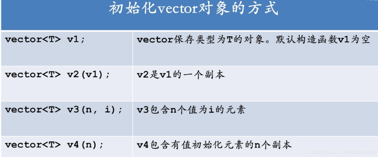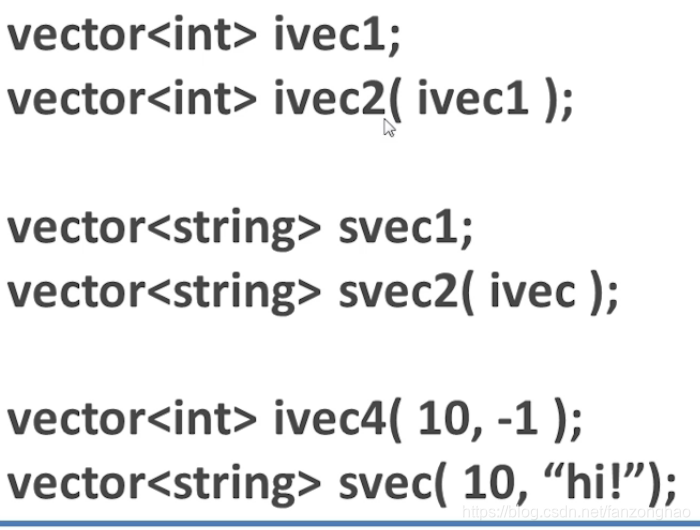1.2初始化vector的一些方式,其实就是不同的构造函数实现: