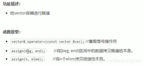 void test06(){vector<int> v(10,1);cout<<"==v[0]:"<<v[0]<<endl;vector<int> v2(v);cout<<"==v2[0]:"<<v2[0]<<endl;vector<int> v3;v3 = v2;cout<<"==v3[0]:"<<v3[0]<<endl;vector<int> v4;v4.assign(v3.begin(), v3.end()-1);cout<<"===v4[0]:==="<<v4[0]<<endl;cout<<"===v4.size():==="<<v4.size()<<endl;vector<int> v5;v5.assign(10, 1);cout<<"===v4[0]:==="<<v5[0]<<endl;cout<<"===v4.size():==="<<v5.size()<<endl;