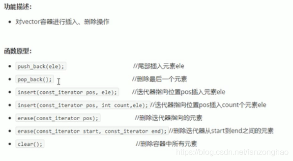 void test06(){vector<int> v;v.push_back(1);v.push_back(2);v.push_back(3);printvector(v);v.insert(v.begin(), 1);printvector(v);v.insert(v.begin()+1, 2,10);printvector(v);v.erase(v.begin());printvector(v);v.erase(v.begin(), v.end()-1);printvector(v);