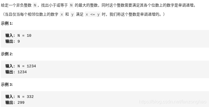 class Solution(object):def monotoneIncreasingDigits(self, N):""":type N: int:rtype: int"""digits = []A = list(map(int, str(N)))# print('==A:', A)for i in range(len(A)):for d in range(1, 10):# print('==digits + [d] * (len(A) - i):', digits + [d] * (len(A) - i))if digits + [d] * (len(A) - i) > A:digits.append(d - 1)breakelse:digits.append(9)# print('==digits:', digits)return int("".join(map(str, digits)))88-2:每日温度