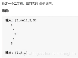 class Solution(object):def inorderTraversal(self, root):""":type root: TreeNode:rtype: List[int]"""stack = []node = rootoutput = []if root == None: return outputwhile node or stack:  # 如果node和aStack都是空的,说明全查完了。while node:  # 如果node是空的,说明左边没子节点了。stack.append(node)node = node.leftnode = stack.pop()  # 左边没子节点了就输出栈顶的节点值,然后从它右边的子节点继续。output.append(node.val)node = node.rightreturn output1-4.后序遍历