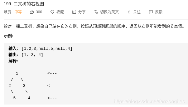 class Solution:def rightSideView(self, root: TreeNode) -> List[int]:res = []if root is None:return resqueue = [root]while queue:size = len(queue)for i in range(len(queue)):node = queue.pop(0)if i == size - 1 :res.append(node.val)if node.left is not None:queue.append(node.left)if node.right is not None:queue.append(node.right)return resc++实现: