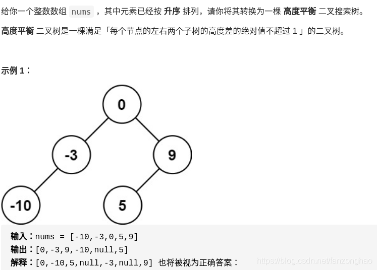 class Solution:def help(self, left, right):if left > right:return Nonemid = left + (right - left) // 2root = TreeNode(self.nums[mid])root.left = self.help(left, mid - 1)root.right = self.help(mid + 1, right)return rootdef sortedArrayToBST(self, nums: List[int]) -> TreeNode:    self.nums = numsreturn self.help(0, len(nums) - 1)# Definition for a binary tree node.