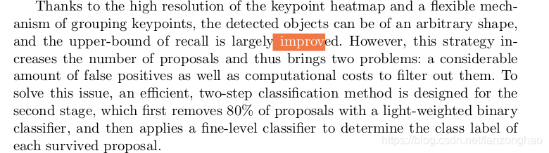 由于产生heatmap的feature map较大,在角点进行组合时,虽然极大提高了召回率但同时特提升了误检率,还加大了过滤的计算量。所以先进行二分类,过滤掉80%候选框,然后在对剩下的框进行多分类。