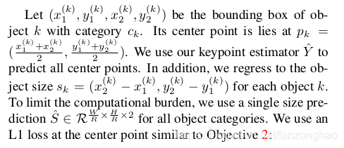 p是key point,R是下采样倍数,这里从预测图的heatmap恢复到原图就会有精度损失,严重影响小物体,所以就通过一个网络分支去学习这种误差.