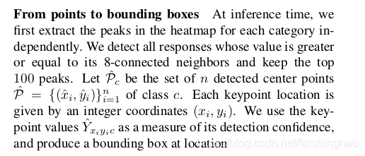 在heatmap上通过8近邻取得前100个峰值,在对8近邻的点3*3 maxpooling获得中心点,在与预测的宽高,偏移量组合就得出检测框.