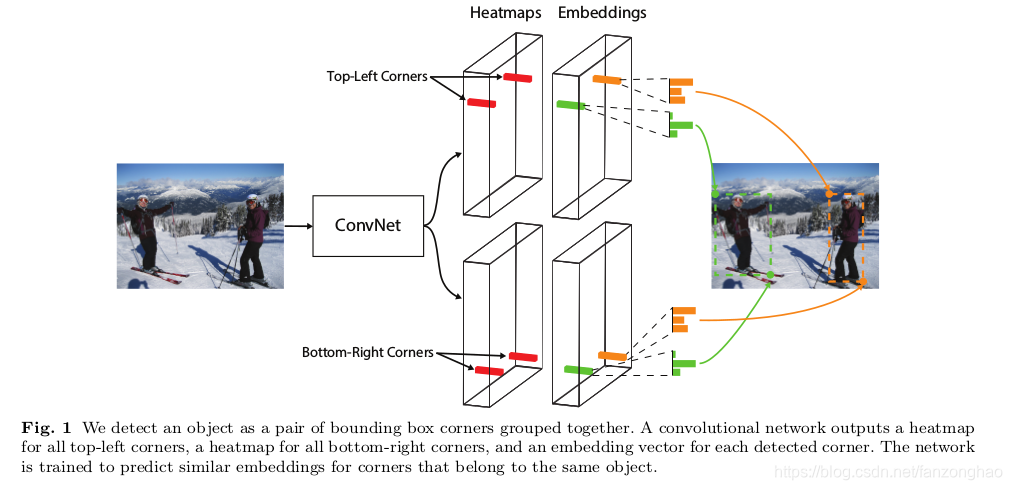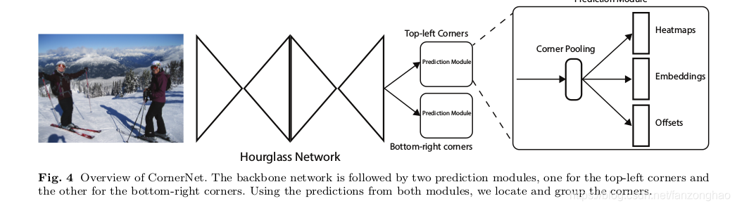为什么没有预测中心点?作者认为角点只需要依赖目标的两个方向,而中心点需要依赖目标的四个方向.同时采用corner pooling编码一些角点的先验信息.