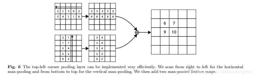 作者认为box的角点经常超出目标,不太好定位,对于左上角角点,水平方向从右往左替换为看到的最大像素值,垂直方向从下往上替换为看到的最大像素值,在相邻点进行像素相加,从而丰富左上角角点信息.