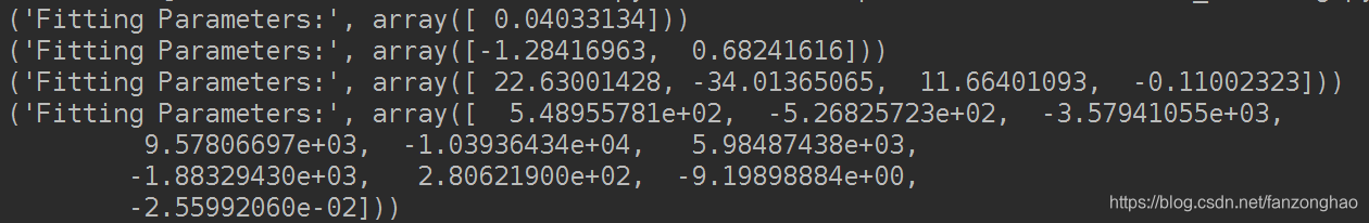 def residuals_func_regularization(p, x, y):ret = fit_func(p, x) - yret = np.append(ret, np.sqrt(0.5*regularization*np.square(p))) # L2范数作为正则化项return ret