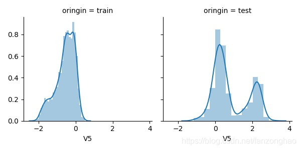 for i in range(len(data_all.columns)-2):#初始网格g = sns.FacetGrid(data_all, col='oringin')#利用map方法可视化直方图g = g.map(sns.distplot, data_all.columns[i])plt.savefig('distplot'+str(i)+'.jpg')