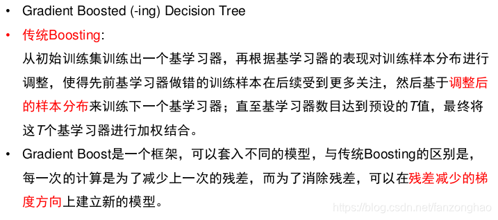 - Boosting 的基本思路就是在不断减小模型的训练误差(拟合残差或者加大错类的权重),加强模型的学习能力,从而减小偏差;