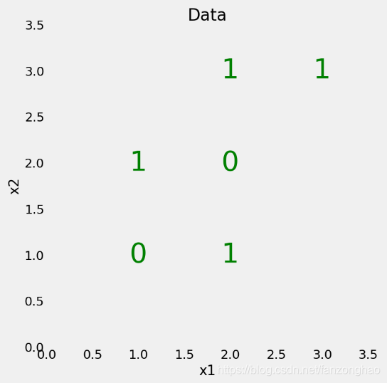 from sklearn import treeX = np.array([[2, 2],[2, 1],[2, 3],[1, 2],[1, 1],[3, 3]])y = np.array([0, 1, 1, 1, 0, 1])plt.style.use('fivethirtyeight')