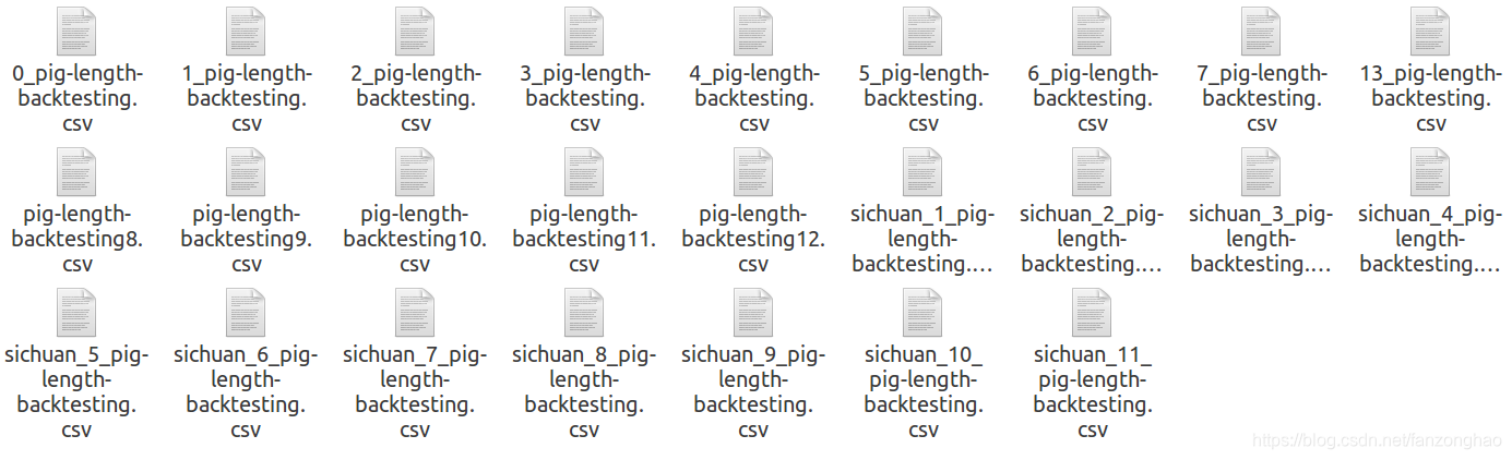 def merge_different_csv():CSV_C0_NAME = 'file_name'CSV_C1_NAME = 'real_length'CSV_C2_NAME = 'dev_length'CSV_C3_NAME = 'dev_length_abs_error'CSV_C4_NAME = 'dev_length_relative_error'CSV_C5_NAME = 'prod_length'CSV_C6_NAME = 'prod_length_abs_error'CSV_C7_NAME = 'prod_length_relative_error'CSV_C8_NAME = 'real_weight'CSV_C9_NAME = 'dev_weight'CSV_C10_NAME = 'dev_weight_abs_error'CSV_C11_NAME = 'dev_weight_relative_error'CSV_C12_NAME = 'prod_weight'CSV_C13_NAME = 'prod_weight_abs_error'CSV_C14_NAME = 'prod_weight_relative_error'CSV_C15_NAME = 'dev_time'CSV_C16_NAME = 'prod_time'csv_path='./data/csv_data'every_csv__path_list_names=[os.path.join(csv_path,i) for i in os.listdir(csv_path)]dev_length_error=[]prod_length_error = []dev_weight_error = []prod_weight_error = []# 计算meanfor every_csv_path in every_csv__path_list_names:with open(every_csv_path, "r") as csvfile:reader2 = csv.reader(csvfile) # 读取csv文件,返回的是迭代类型# print(reader2)for i,csv_list in enumerate(reader2):# print(csv_list)if i:csv_rows ={CSV_C0_NAME: csv_list[0],CSV_C1_NAME: csv_list[1],CSV_C2_NAME: csv_list[2],CSV_C3_NAME: csv_list[3],CSV_C4_NAME: csv_list[4],CSV_C5_NAME: csv_list[5],CSV_C6_NAME: csv_list[6],CSV_C7_NAME: csv_list[7],CSV_C8_NAME: csv_list[8],CSV_C9_NAME: csv_list[9],CSV_C10_NAME: csv_list[10],CSV_C11_NAME: csv_list[11],CSV_C12_NAME: csv_list[12],CSV_C13_NAME: csv_list[13],CSV_C14_NAME: csv_list[14],CSV_C15_NAME: csv_list[15],CSV_C16_NAME: csv_list[16]}dev_length_error.append(float(csv_rows.get(CSV_C4_NAME)))prod_length_error.append(float(csv_rows.get(CSV_C7_NAME)))dev_weight_error.append(float(csv_rows.get(CSV_C11_NAME)))prod_weight_error.append(float(csv_rows.get(CSV_C14_NAME)))# print(round(mean(dev_length_error),2))# print(round(mean(prod_length_error), 2))# print(round(mean(dev_weight_error), 2))# print(round(mean(prod_weight_error), 2))CSV_C4_NAME = CSV_C4_NAME + '=' + str(round(mean(dev_length_error), 2)) + '%'CSV_C7_NAME = CSV_C7_NAME + '=' + str(round(mean(prod_length_error), 2)) + '%'CSV_C11_NAME = CSV_C11_NAME + '=' + str(round(mean(dev_weight_error), 2)) + '%'CSV_C14_NAME = CSV_C14_NAME + '=' + str(round(mean(prod_weight_error), 2)) + '%'print(CSV_C4_NAME, CSV_C7_NAME, CSV_C11_NAME, CSV_C14_NAME)fieldnames_l = [CSV_C0_NAME, CSV_C1_NAME, CSV_C2_NAME, CSV_C3_NAME, CSV_C4_NAME, CSV_C5_NAME, CSV_C6_NAME,CSV_C7_NAME, CSV_C8_NAME, CSV_C9_NAME, CSV_C10_NAME, CSV_C11_NAME, CSV_C12_NAME, CSV_C13_NAME,CSV_C14_NAME, CSV_C15_NAME, CSV_C16_NAME]csvfile_all = open('./data/pig_dev_prod_data.csv', 'w')writer_pig_data = csv.DictWriter(csvfile_all, fieldnames=fieldnames_l)writer_pig_data.writeheader()for every_csv_path in every_csv__path_list_names:with open(every_csv_path, "r") as csvfile:reader2 = csv.reader(csvfile) # 读取csv文件,返回的是迭代类型# print(reader2)for i,csv_list in enumerate(reader2):# print(csv_list)if i:csv_rows ={CSV_C0_NAME: csv_list[0],CSV_C1_NAME: csv_list[1],CSV_C2_NAME: csv_list[2],CSV_C3_NAME: csv_list[3],CSV_C4_NAME: csv_list[4],CSV_C5_NAME: csv_list[5],CSV_C6_NAME: csv_list[6],CSV_C7_NAME: csv_list[7],CSV_C8_NAME: csv_list[8],CSV_C9_NAME: csv_list[9],CSV_C10_NAME: csv_list[10],CSV_C11_NAME: csv_list[11],CSV_C12_NAME: csv_list[12],CSV_C13_NAME: csv_list[13],CSV_C14_NAME: csv_list[14],CSV_C15_NAME: csv_list[15],CSV_C16_NAME: csv_list[16]}writer_pig_data.writerow(csv_rows)