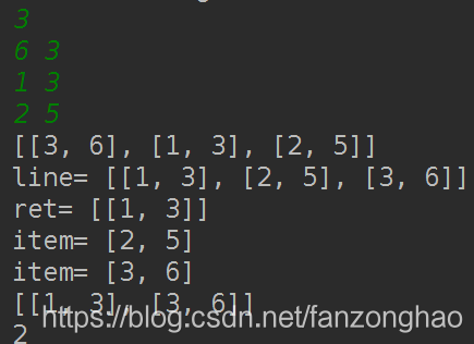 print(line)# line=[[3, 6], [1, 3], [2, 5]]