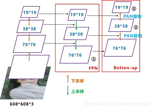 其实就是在FPN输出在增加下采样。融合FPN的语义特征和特征金字塔的位置特征。
