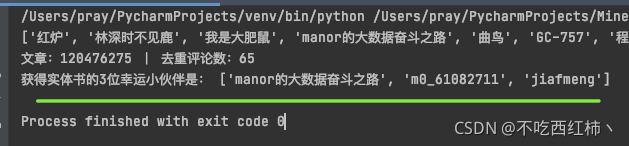 获得实体书的3位幸运小伙伴是: ['manor的大数据奋斗之路', 'm0_61082711', 'jiafmeng']
