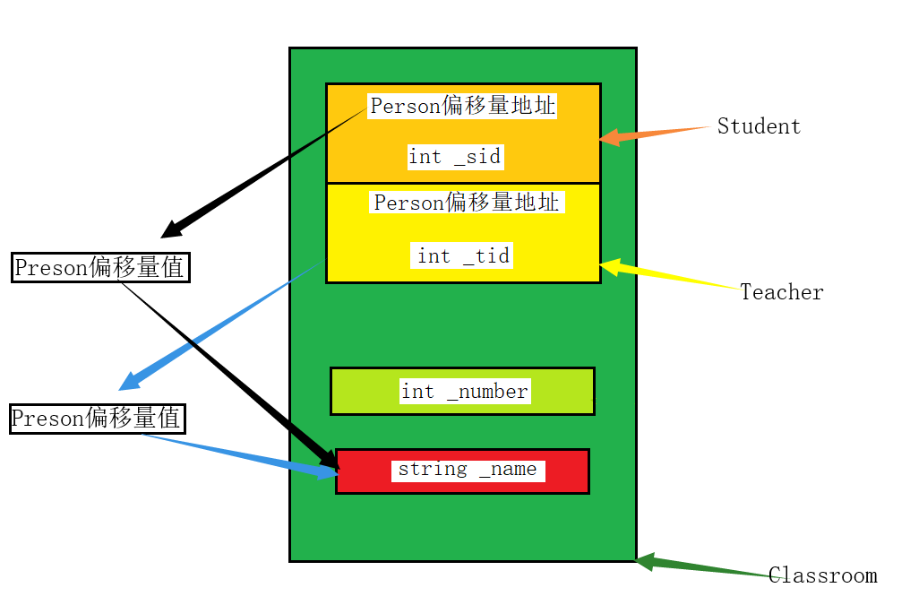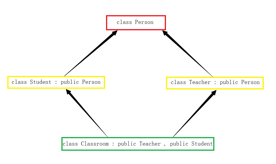 通过虚拟继承可以解决菱形继承的二义性和数据冗余的问题(继承同一个父类的两个类设置为虚拟继承)。如上面的继承关系,在Student和Teacher的继承Person时使用虚拟继承,即可解决问题。需要注意的是,虚拟继承不能在其他地方去使用。
