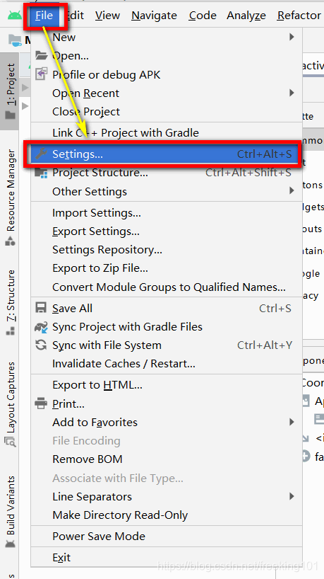 从 github 下载 smalidea.zip,然后在 Android 中依次选择: File --> Setting 将会弹出设置对话框