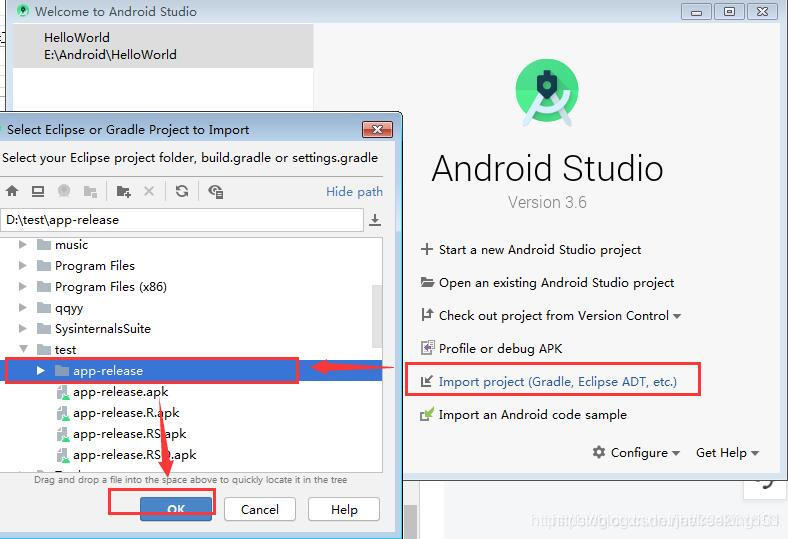 如果是通过 " 导入已经存在的 " 方式导入 smali ,则需要设置 sdk :