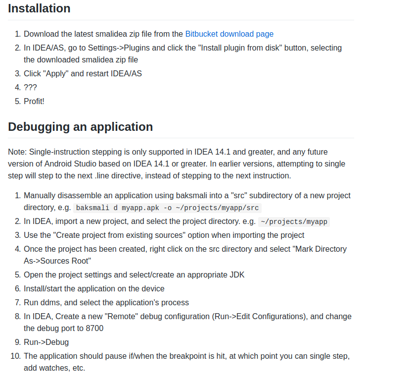 - ③、smalidea-0.05.zip (目前最新版 0.05),AS 插件,用来给 smali 下断点,单步调试,