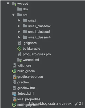 这样,就将反编译的 smali 文件导入到 AndroidStudio 目中了。操作后的目录界面大致如下。