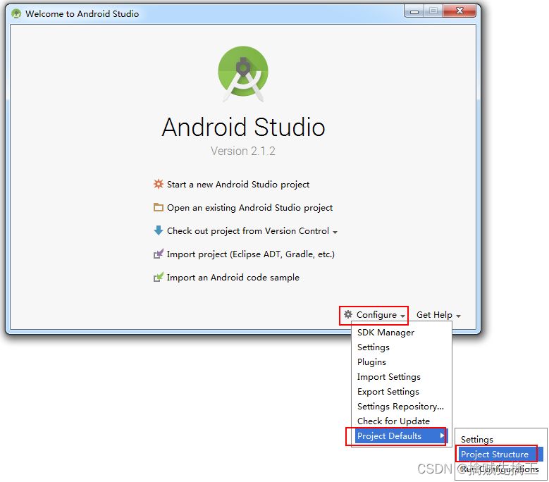 在使用 Android Studio 的时候,也可以随时修改JDK和Android SDK的路径。选择「File-->Other Settings-->Default Sructure」,即可进行同样的修改。