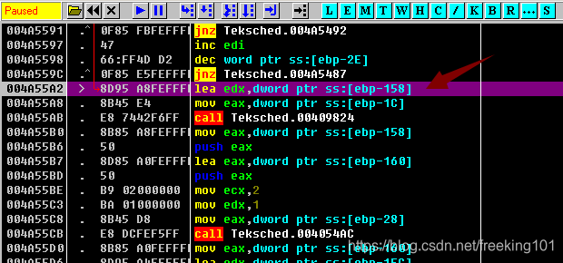 在 call 上面的 mov 指令下一个断点
