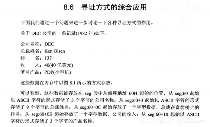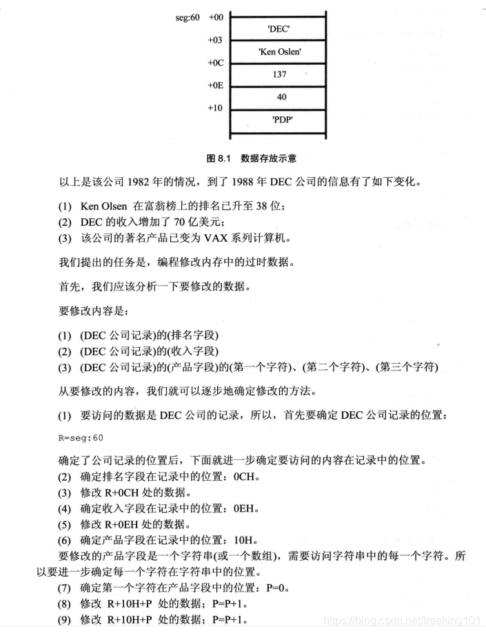 assume cs:codesg,ds:datasgdatasg segmentdb '1975','1976','1977','1978','1979','1980','1981','1982','1983'db '1984','1985','1986','1987','1988','1989','1990','1991','1992'db '1993','1994','1995';84字节。总共 21 个年份,一个年份4个字节,总共 84 字节dd 16,22,382,1356,2390,8000,16000,24486,50065,97479,140417,197514dd 345980,590827,803530,1183000,1843000,2759000,3753000,4649000,5937000;84字节。收入总共 21 个字段,每个字段4个字节,总共 84 字节dw 3,7,9,13,28,38,130,220,476,778,1001,1442,2258,2793,4037,5635,8226dw 11542,14430,15257,17800;通过计算得到每一个代码段相对于起始的偏移量