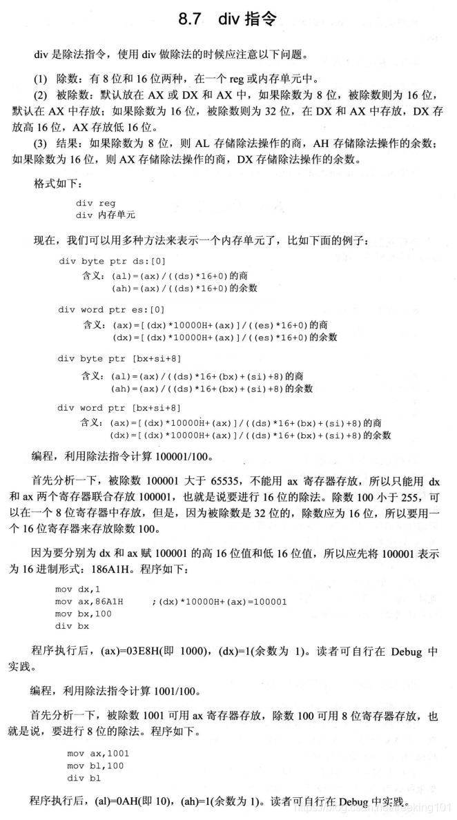 8.7 div 指令 ( 除法 指令 )