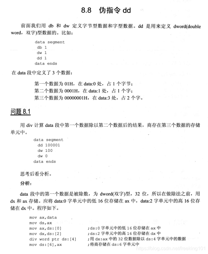 8.8 伪指令 dd ( 定义 双字 )