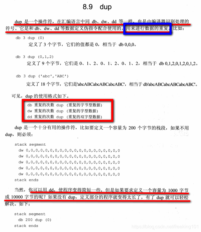 8.9 dup 指令 ( 数据的重复 )