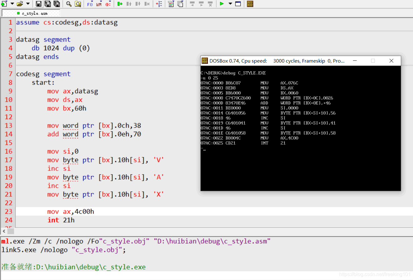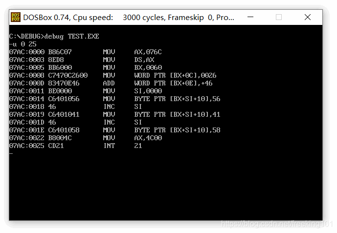 debug 的 反汇编结果截图: