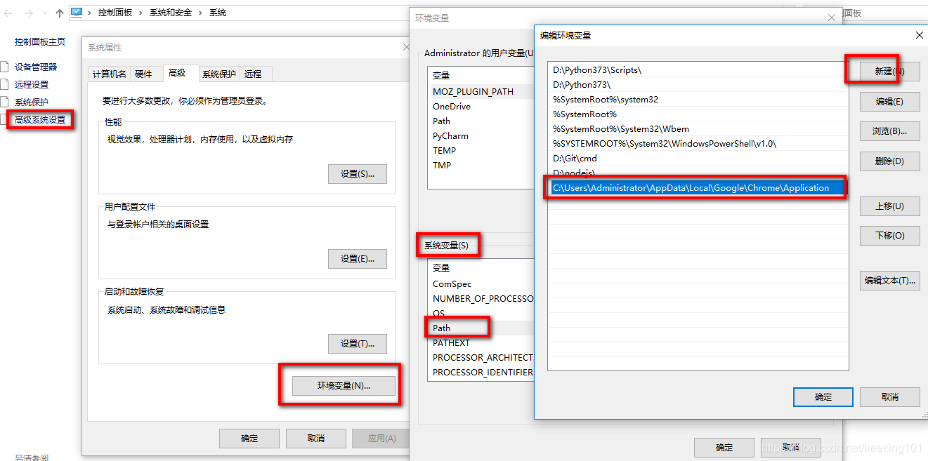 在 系统环境变量 PATH 里将 chrome的路径 添加进去。