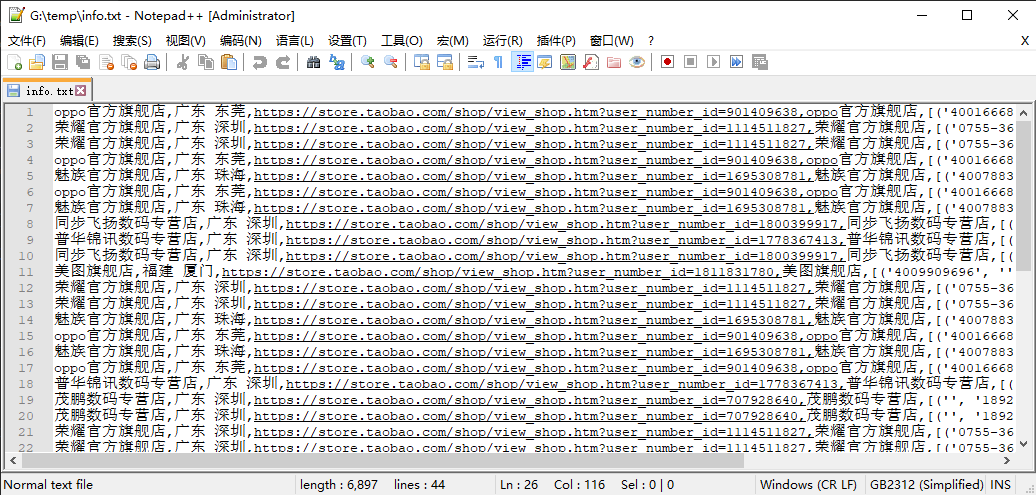 抓取信息保存到 info.txt ,文件截图: